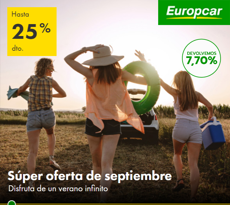 Si aún no te has ido de vacaciones y quieres disfrutar del buen tiempo que aún tenemos esta es tu oportunidad. Aprovecha y reserva tu coche con Europcar y disfruta de hasta un 25% de descuento en el alquiler para darte una escapadita con las Súper Ofertas de Septiembre. ¡No te pierdas esta oportunidad para reservar más barato!