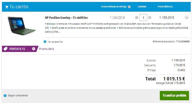Eres un gamer 100%, estés donde estés te apetecerá echarte una partidita al máximo rendimiento pero tu antiguo portátil se ralentiza hasta al jugar al solitario, lo cual será una señal inequívoca de que debes darle boleto y hacerte con uno nuevo. ¡Paga un 15% menos gracias al código de descuento PORTATIL15! ¿Has visto el HP Pavilion Gaming -15 -ak003ns? Por poco más de 1.000€, descuentos incluidos y sin gastos de envío podrás hacerte con un portátil que aterrorizará al resto de dispositivos portátiles de tu casa. ¡Disfruta de los mejores juegos cuando y donde quieras!